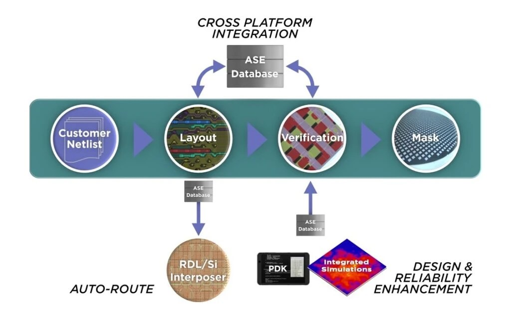 ASE推出了集成设计生态系统 (IDE),以解决与芯片集成相关的封装设计挑战,显著提高了设计效率和质量,同时缩短了客户的上市时间。IDE 的主要功能包括用于布局和验证的跨平台交互、具有内置设计规则检查 (DRC) 的 RDL 和硅中介层的高级自动布线,以及在设计工作流程中实施封装设计套件 (PDK)。