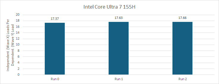 英特尔的 Xe - LPG 架构不存在跨波内存访问的错误依赖问题。在英特尔 13 代酷睿(Meteor Lake)的集成显卡上进行相同的测试时,结果会因两个波最终运行的位置而有所不同。如果波 X 和波 Y 在共享指令控制逻辑的 XVE(执行单元)上运行,波 X 的性能会比在其他情况下更低。不过,很明显 Xe - LPG 不会强制一个波等待另一个波的访问完成。英特尔后续的战法师(Battlemage,Xe2)架构也有类似的表现,英特尔较早前的第九代酷睿(Skylake)核显也是如此。