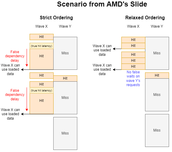除了消除跨波的错误延迟,AMD 还改进了波内的内存请求处理。就像采用顺序执行的 CPU 核