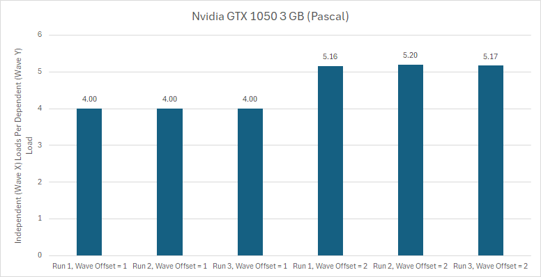 如果一个波与另一个波的偏移量不是 4 的倍数,也不是 4 的倍数加 1,那么就不会存在错误的依赖问题。在 GTX 1660 Ti 上测试发现,图灵(Turing)架构也不存在这个问题。