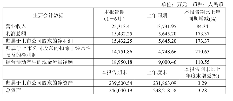 芯动联科2025年半年度财报显示,公司实现营业总收入2.53亿元,同比增长84.34%;实现归属于上市公司股东的 净利润1.54亿元,同比增长173.37%;实现归属于上市公司股东的扣除非经常性损益的净利润1.48 亿元,同比增长210.65%