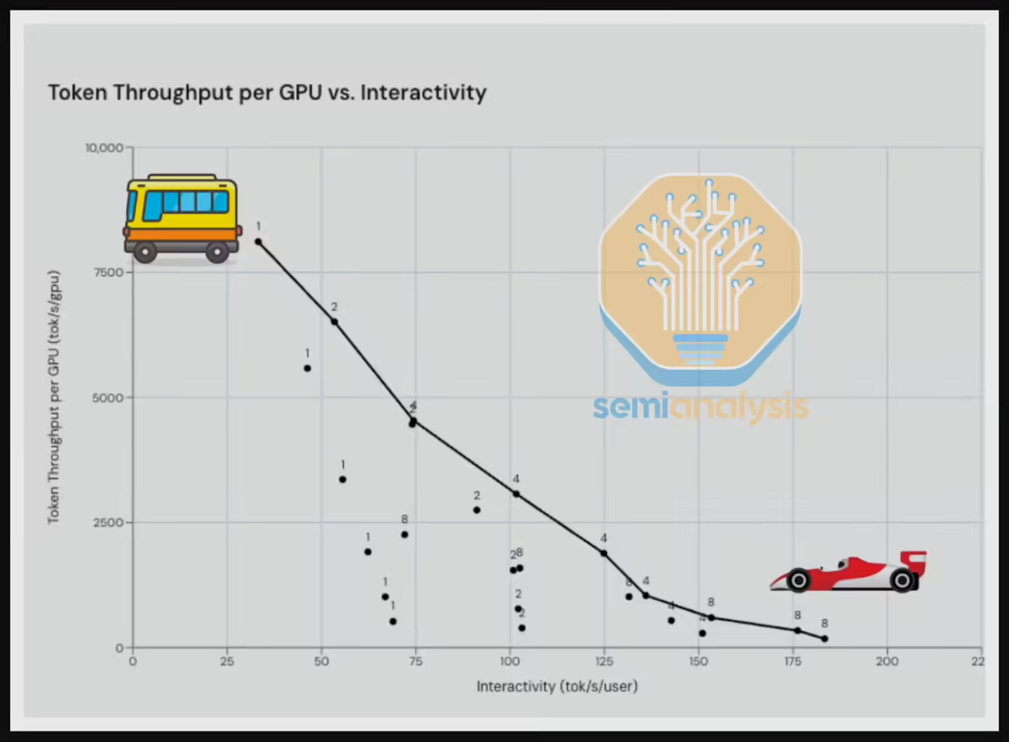 InferenceMax 引入了两个相互制约的关键性能指标。其一是“吞吐量”,指在单位时间内处理更多并发请求的能力,这有利于最大化 GPU 利用率;其二是“交互性”,指为单个用户提供更快响应速度的能力,例如在聊天机器人场景中。