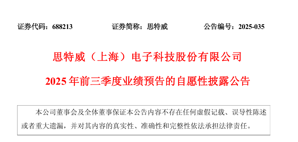 10月17日,思特威发布2025年前三季度业绩预告,经财务部门初步测算,预计2025年前三季度实现营业收入610,000万元到 650,000 万元。与上年同期相比,将增加189,245万元到229,245万元,增幅45%到54%。