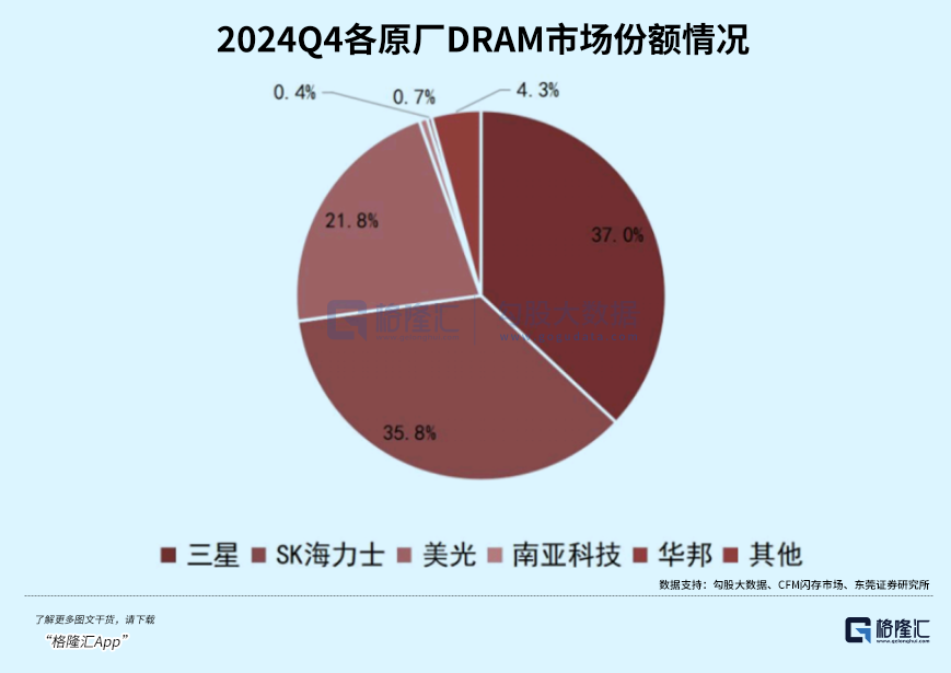 2024年来自韩国和美国的前三大厂商仍占据总市场份额超过九成,但由于三星、美光、海力士等头部公司加速向新制程节点的HBM、DDR5、LPDDR5等产品迁移,放弃或减少利基型产品的生产。