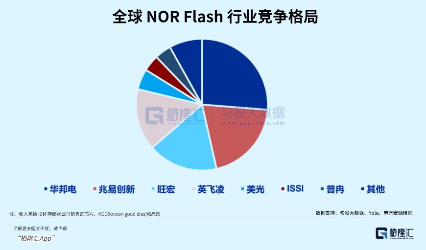 正是借助这个产业规律,兆易创新在2013年成功量产了自主研发的NORFlash,自此立足于被国家巨头垄断多年的市场,经过多年经营成为了全球第二的NORFlash芯片供应商。