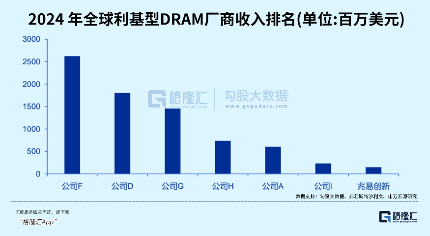 如今,随着存储芯片内部产能结构再次调整,兆易创新在利基型DRAM市场有机会进一步提高份额。根据港股招股书,公司2024年利基型DRAM收入为1.46亿美金,市场份额为1.7%,全球第七,中国大陆第二。
