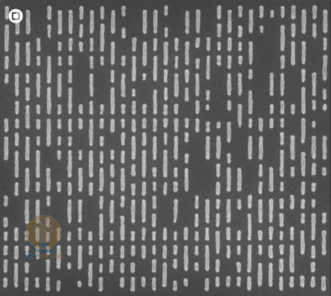 这是Substrate公司XRL设备上单次曝光图案化的图像。图案尺寸为12nm,尖端间距为13nm,并带有随机通孔,最小间距为30nm,关键尺寸(直径)为12nm。来源:Substrate