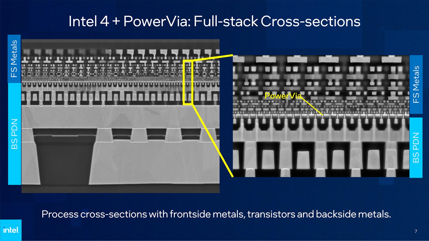 PowerVia 等技术可以降低所谓的 IR 压降,即电源在传输过程中电压的损耗。更高的效率意味着晶体管能够更稳定地在其设计电压下运行,从而提供更稳定的时钟频率。英特尔自身的测试表明,在相同的制程节点和电压下,通过将供电电路移至芯片底部,时钟频率提高了 6%,电压降降低了 30%。