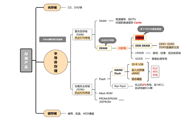 HBM(高带宽内存),作为目前所有存储芯片中最高端的产品,在AI算力中有重要作用,是大幅提升计算效率的关键,但很可惜,HBM的市场规模从0起步,直至今年才占到整个存储芯片的20%。换言之,前两年各类低门槛的存储芯片,仍然占据行业80%以上份额。10%的收入翻倍,只是整体增长10%。