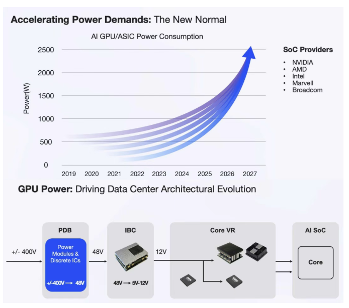 而电源管理芯片的迭代,实际上也可以运用在AI数据中心中,其核心思想就是控制用更大的电,通过功率提升来提升计算效率。所以在AI链的逻辑开始往发电、电力设备、储能、电控等发散的时候,这类模拟芯片公司实际上将很可能在板块中脱颖而出。