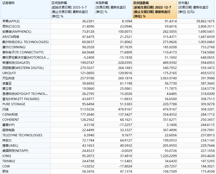 当前看到,大体上3年涨幅、今年涨幅及半年涨幅,衡量了这些股票是从chatgpt开启的浪潮以来的先涨、后涨顺序和强度。事实上像存储巨头们的后涨属性明显,但是总涨幅实际上也非常不错。