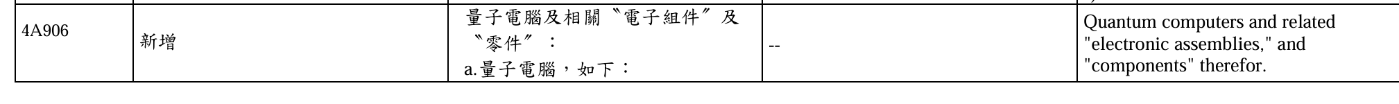 修正条目4A906为新增,量子计算机及相关 “电子组件” 及 “零件”。