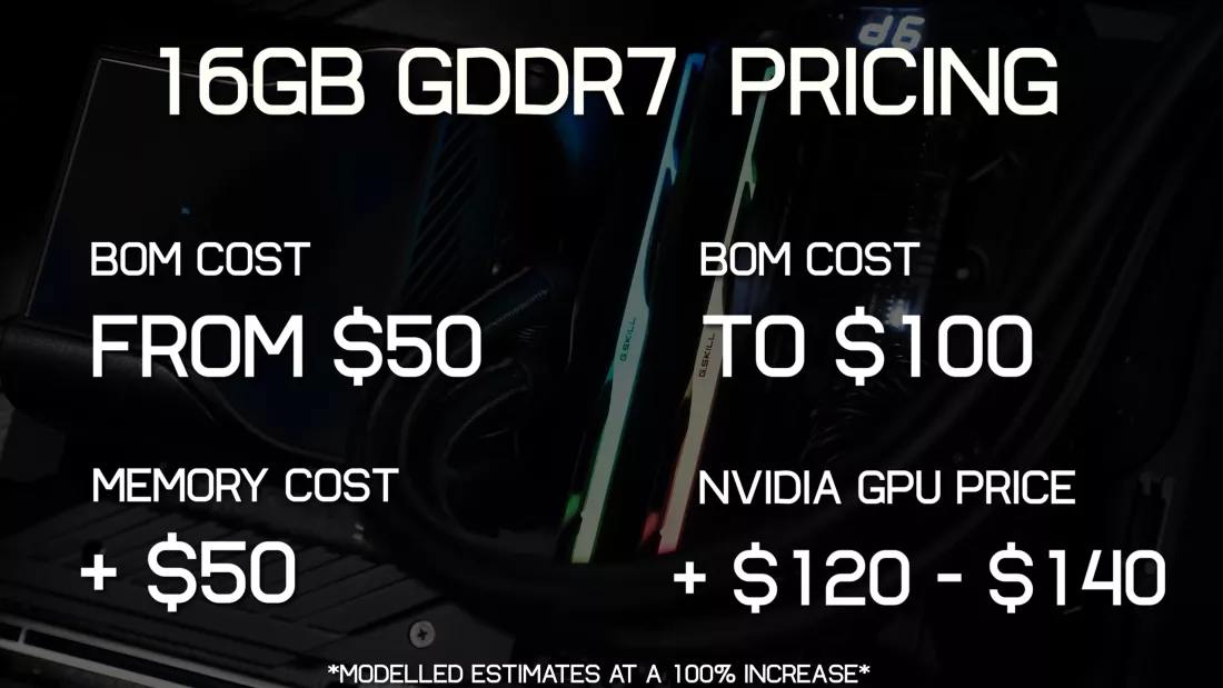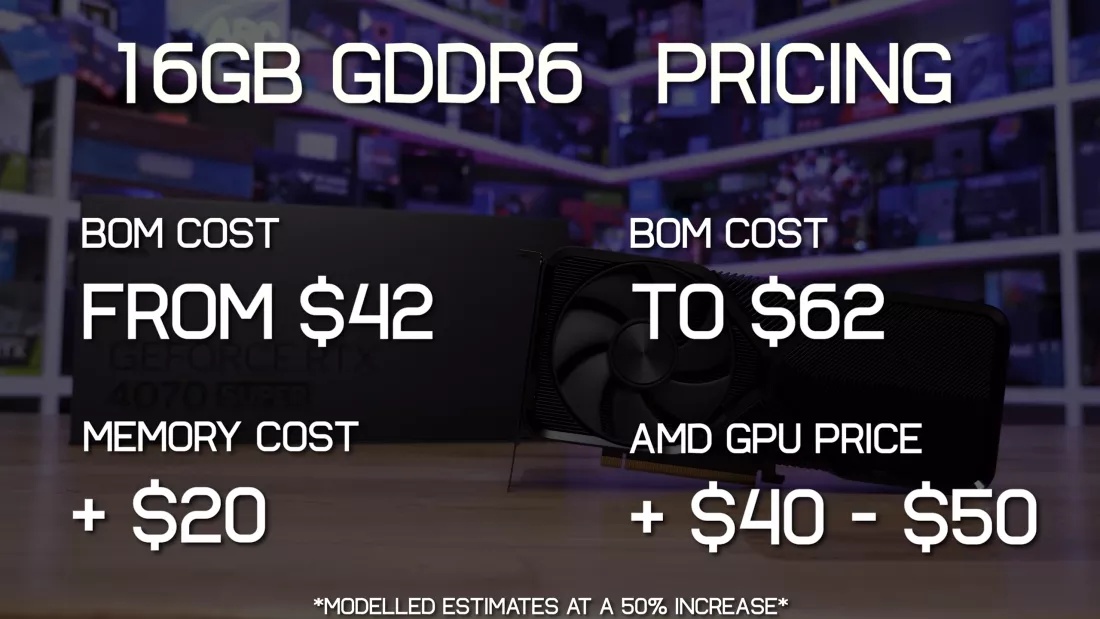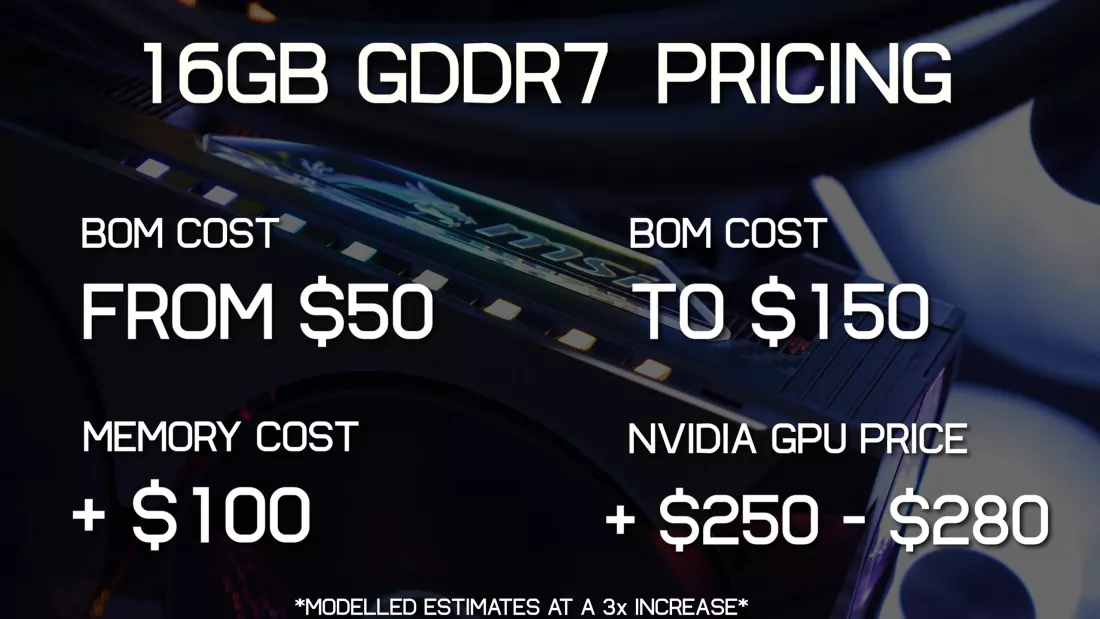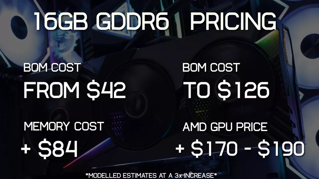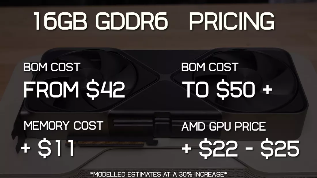 如果显存价格像DDR5内存那样翻倍(DDR5内存模块价格已经翻了一番),前景将更加严峻。在这种情况下,GPU价格在大多数情况下可能会至少上涨100美元,因为典型显存配置的内存物料清单成本将增加40至50美元。