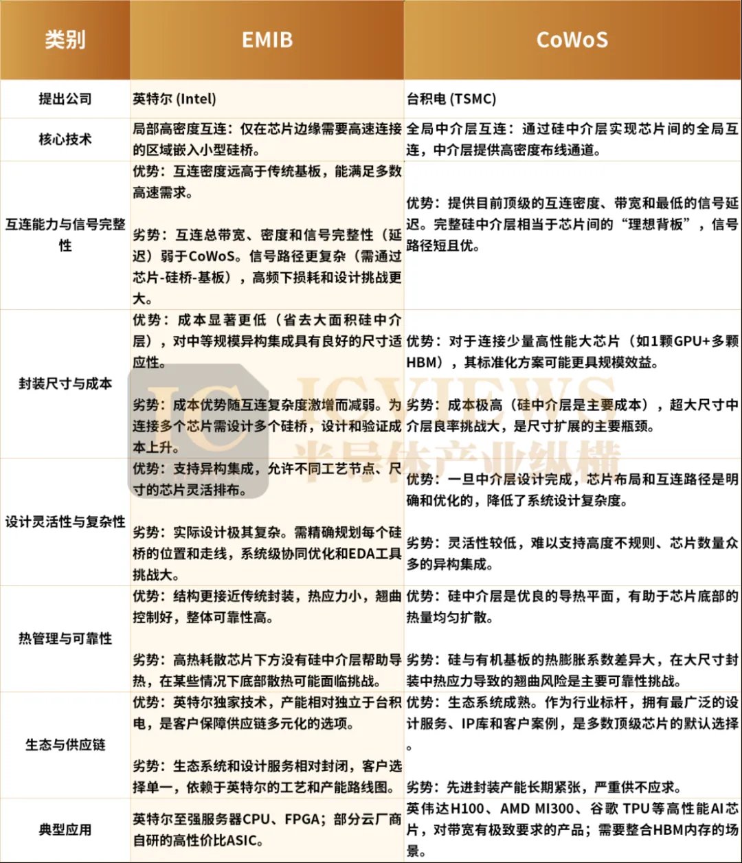 与此同时,EMIB的崛起并不意味着CoWoS的衰落,而是先进封装行业迈入场景化精准匹配的新发展阶段。CoWoS在互联密度和超高频段信号完整性上的优势,仍是英伟达、AMD等高端GPU厂商的核心需求,短期内难以被替代。而EMIB则在ASIC、中端AI芯片等领域或可打开增量空间。