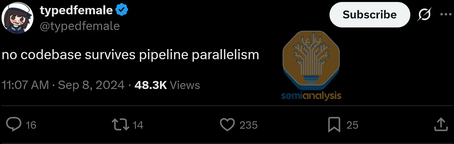 遗憾的是,只专注于 MXFP8 的弊端在于 BF16 的性能并没有提升。像 Anthropic 这样的高级 L337 用户不需要 BF16 进行训练,他们具备使用 MXFP8 进行训练的技能,但普通机器学习训练师只知道如何使用 BF16 进行训练。