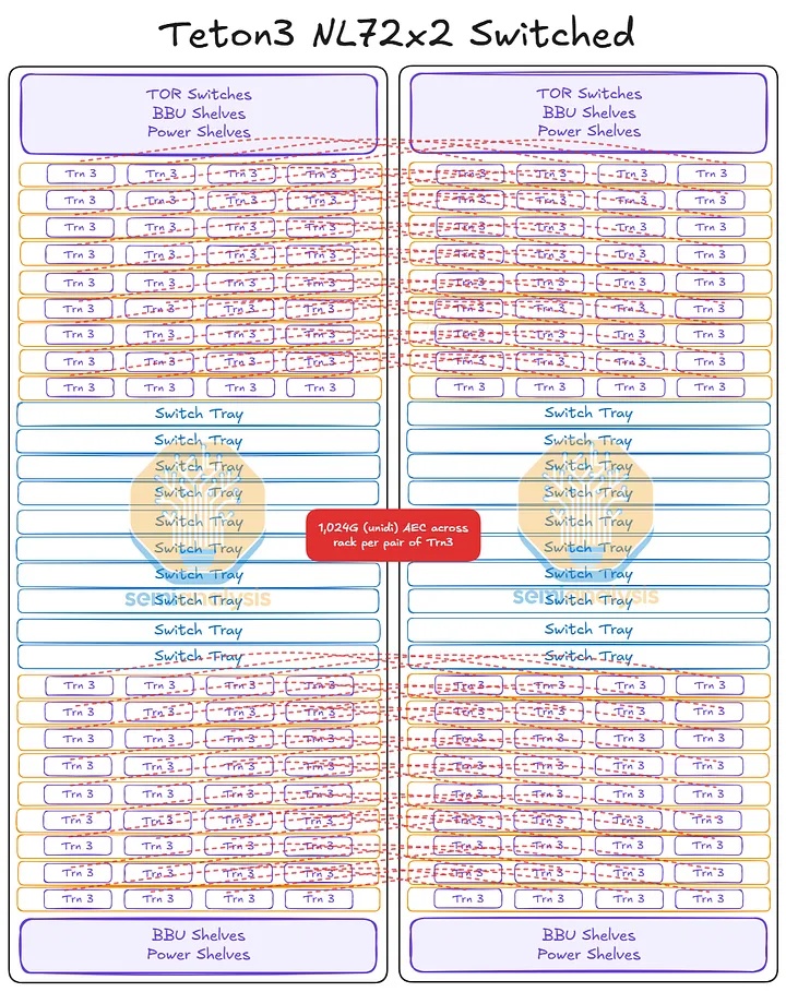 Trainium3 NL72x2 开关式(Teton3 Max)