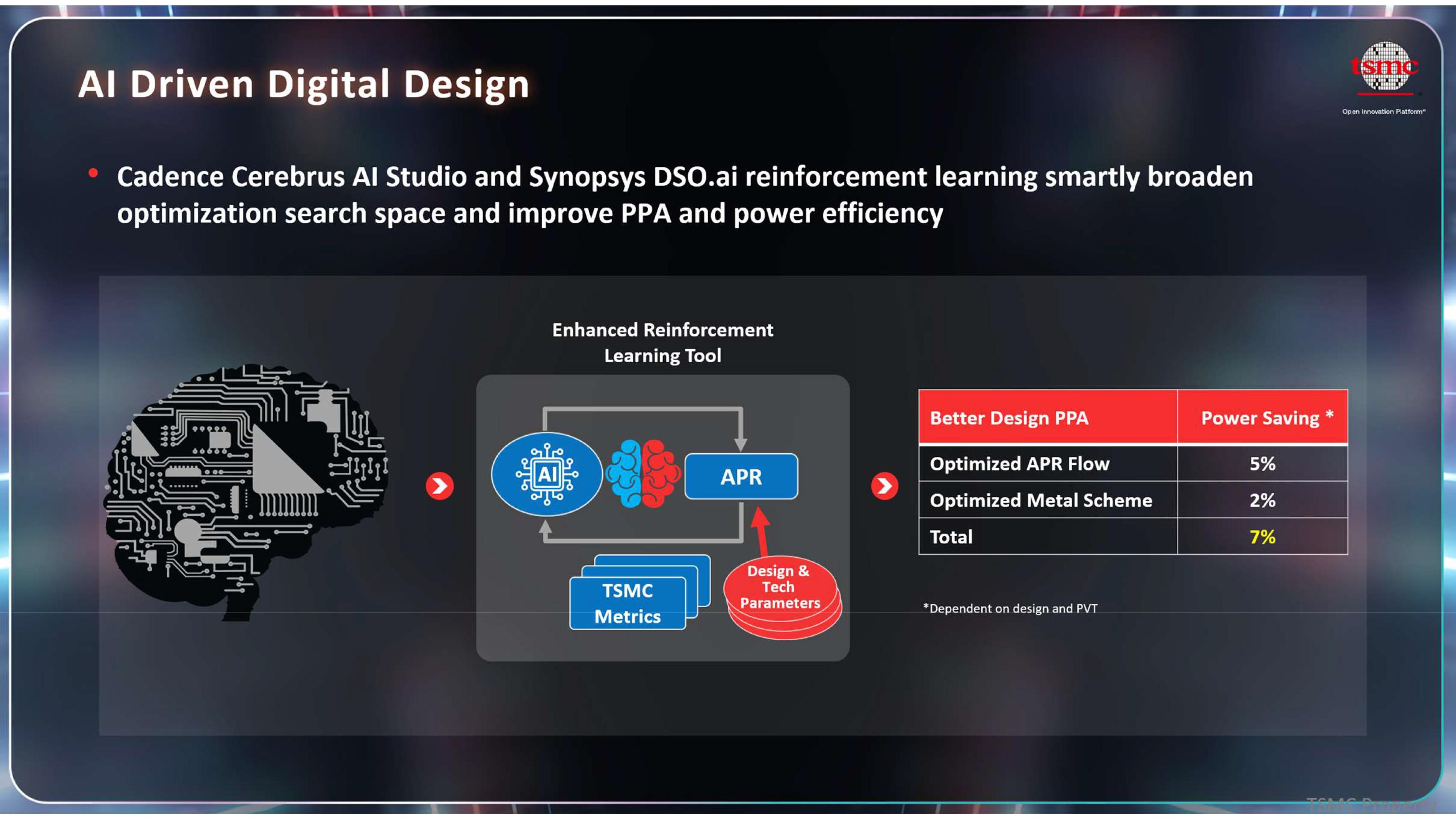 有趣的是,除了台积电的制程节点之外,还有其他方法可以提高设计的能效。例如,芯片设计人员可以使用人工智能增强的 Cadence Cerebrus AI Studio 和 Synopsys DSO.ai 等自动化布局布线 (APR) EDA 工具,这些工具利用强化学习技术探索更广泛的优化空间,涵盖各种制造工艺和布局,并自动调整设计参数和布局方案,从而提升性能、降低功耗并缩小面积 (PPA)。