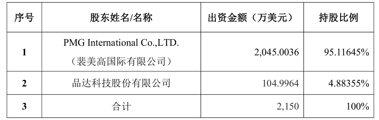 裴美高国际为一家注册于萨摩亚的离岸有限责任公司,法定代表人/负责人为吕松寿,其与蓝思科技控股股东及高管不存在关联关系或利益安排,且不属于失信被执行人。该公司的核心资产为持有元拾科技(浙江)有限公司(下称"元拾科技")95.11645%的股权,剩余4.88355%股权由品达科技股份有限公司持有。