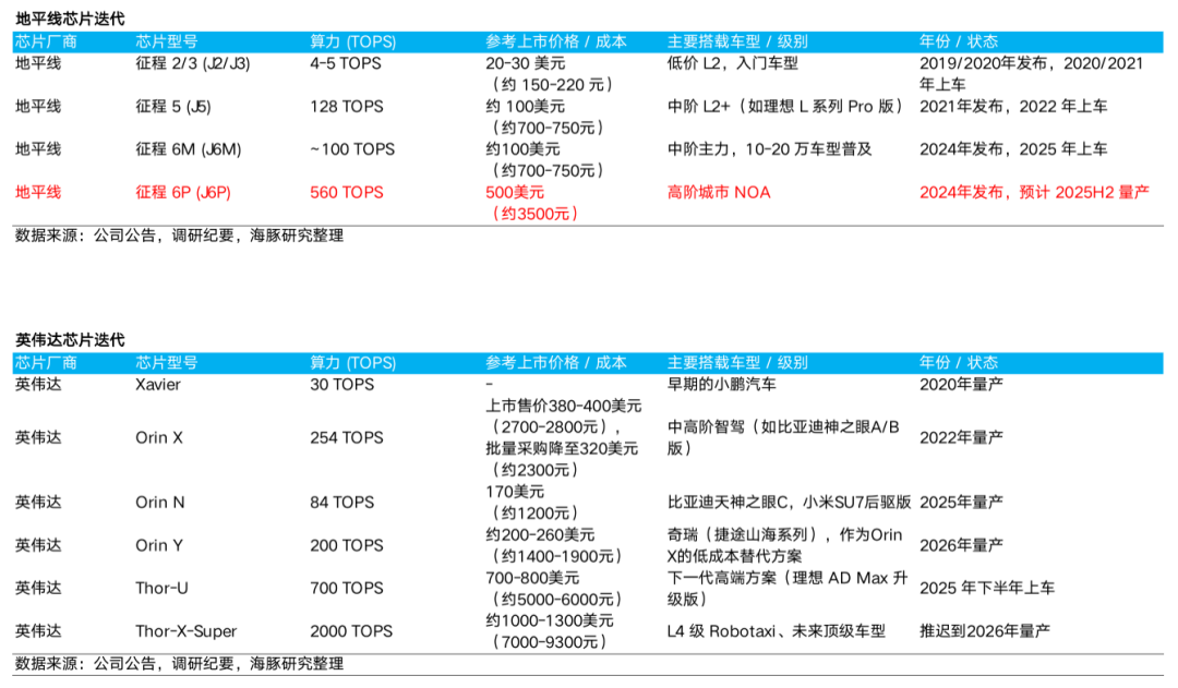 从地平线芯片的迭代来看,地平线用于城市NOA智驾的J6P芯片约500美元,是用于高速NOA智驾J5和J6M售价的5倍,更远高于地平线初代用于L1-L2低级智驾的J2/J3芯片售价。
