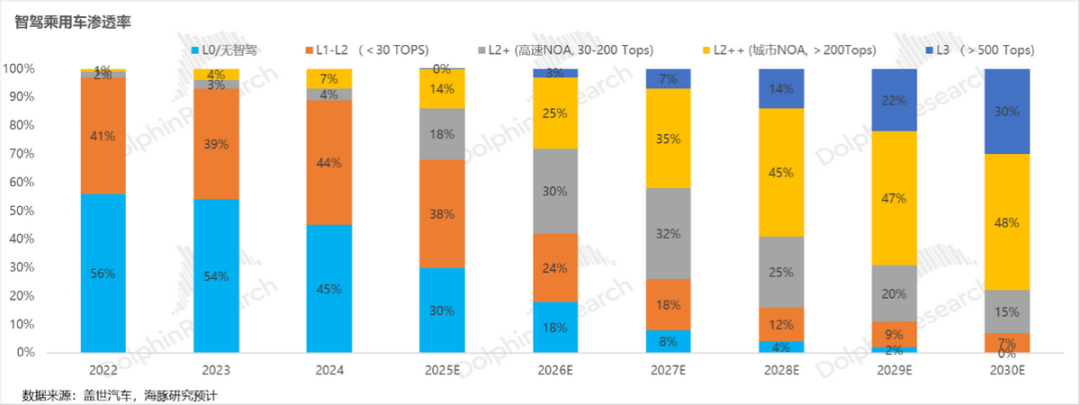 海豚君预计以后智驾的竞争将进一步升级,中高阶智驾(尤其城市NOA及以上)的渗透率将加速提升: