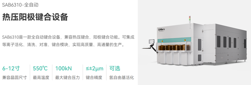 据介绍,SAB6310全自动12英寸热压键合设备的一体化集成设计突破了传统分散工艺的局限,实现了多工序的闭环作业;其卓越的材料兼容性与工艺延展性,构建了覆盖从金属、玻璃到多种胶材的键合能力,并可将应用场景从CIS拓展至MEMS、Micro-LED等更广阔的领域;同时,模块化可扩展的架构为量产效率与未来产能提升提供了坚实基础。