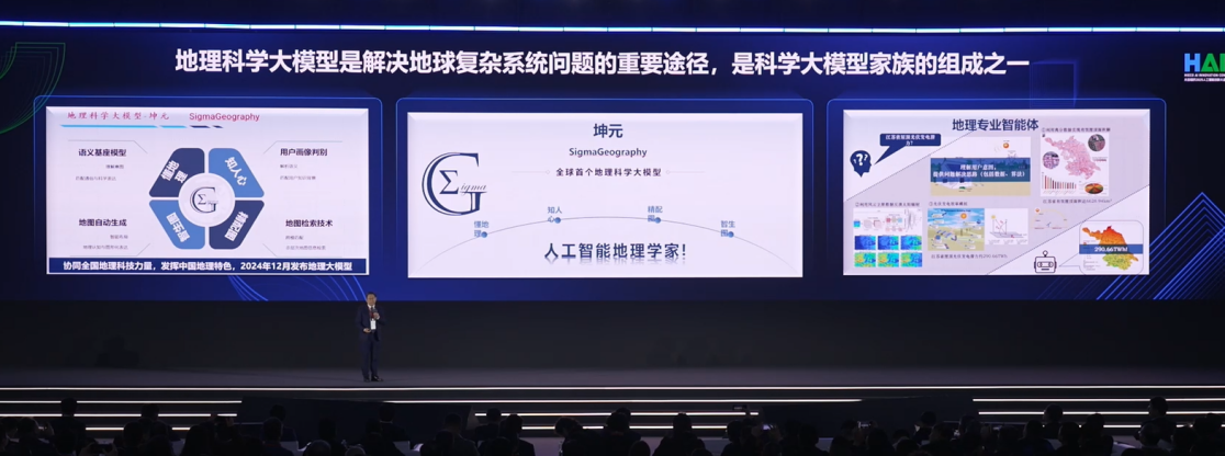 大会还展示了AI在科学探索与物理世界交互方面的最新成果。中国科学院院士周成虎发布了全球首个地理科学大模型——“坤元”(SigmaGeography)。该模型集成了语义基座、地图自动生成及地理检索技术,被誉为“人工智能地理学家”,能够为地球复杂系统问题提供智能决策支持。