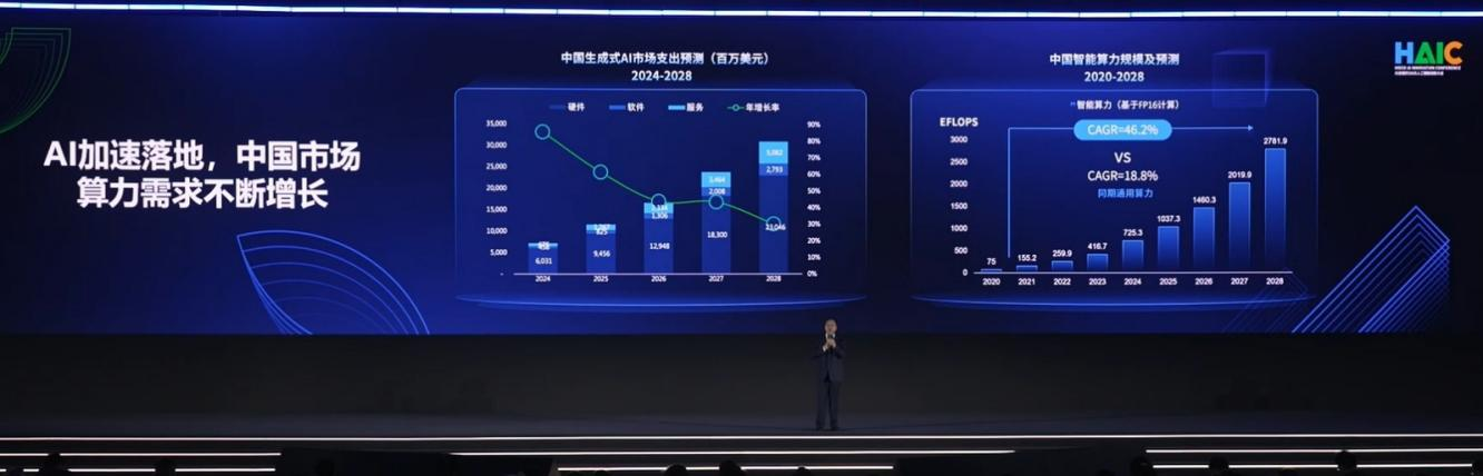 随着大模型技术与应用的持续演进,算力需求呈现出显著的结构性变化。IDC预测,2024年至2028年,中国智能算力规模(基于FP16计算)的复合年增长率(CAGR)将高达46.2%,远超同期通用算力18.8%的增速。中国“十五五”规划建议中已明确提出从新型基础设施建设、产业集群建设、技术自主与核心组件国产化等7个方面促进数智化发展,这为国产算力产业提供了明确的政策指引。