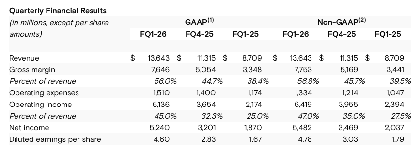 日前,美光科技公布了2026财年第一季度(截至11月27日的三个月)营收和利润,该季度营收136亿美元,环比增长20%,好于市场预期(129亿美元),本季度收入增长主要来自于DRAM和NAND业务的双重带动。
