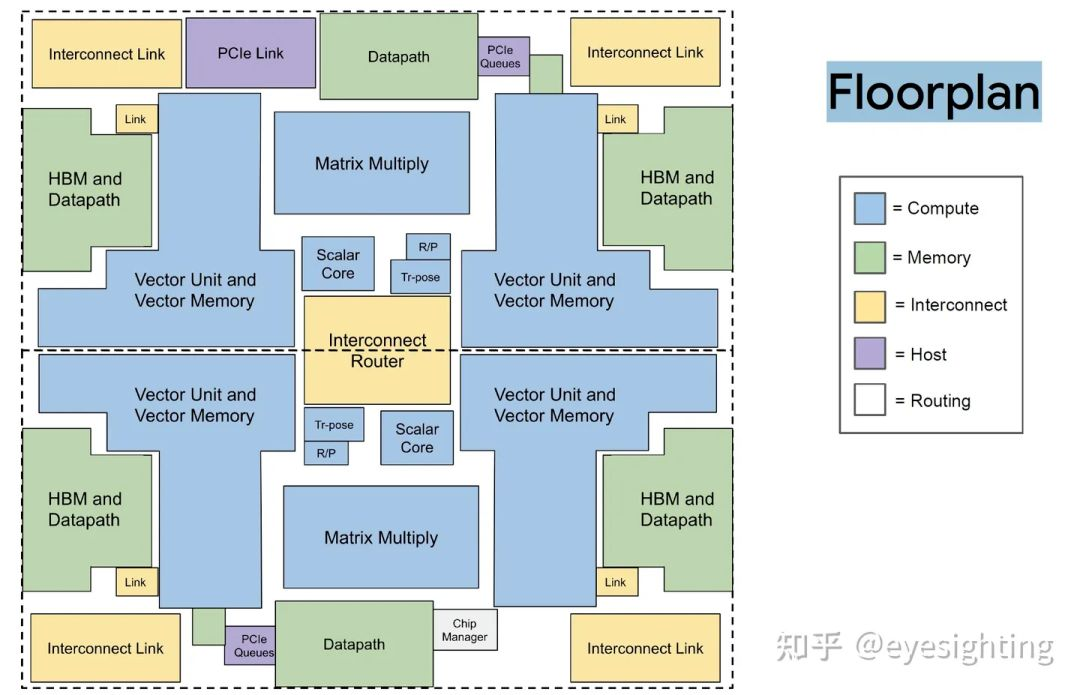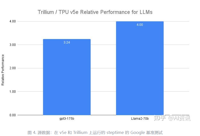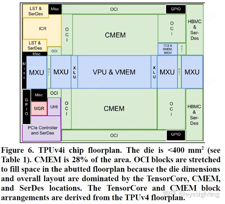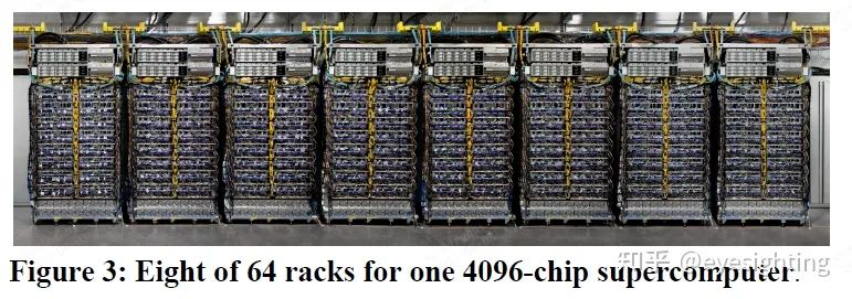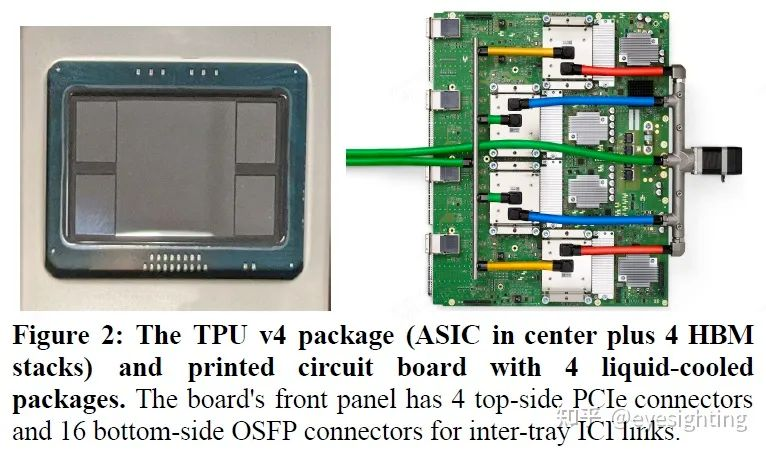 1)单核TPUv4i 用于推理,双核 TPUv4(可扩展至 4096 个芯片)用于训练。