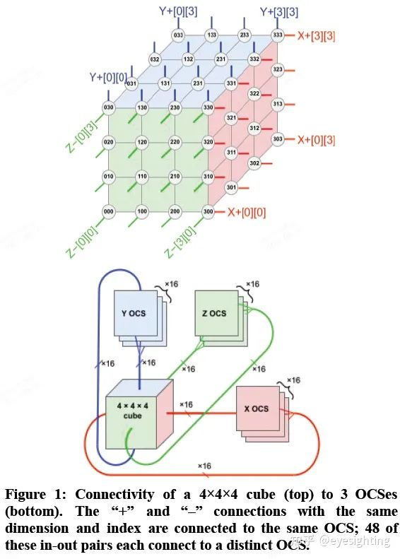 1)通过引入具有光学数据链路的光路交换机(OCS)来解决规模和可靠性障碍,允许 4K 节点超级计算机通过重新配置来容忍 1K CPU 主机在 0.1%–1.0% 的时间内不可用。