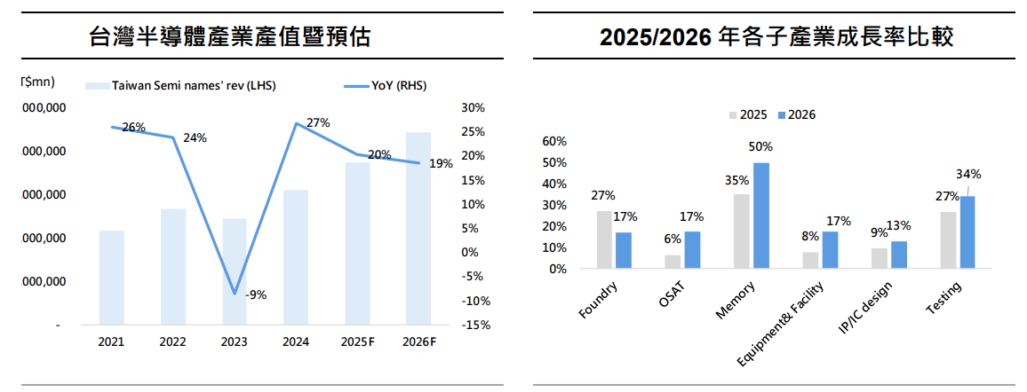 AI 芯片失效的成本极高,促使产业必须提供完整的测试项目覆盖,以提升终端运行的稳定性。测试产值预计在2026 年将扩张至34% 的成长率,达到1,156 亿元。