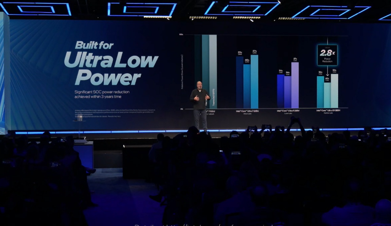 在制程工艺方面,陈立武宣布英特尔已按计划甚至超预期实现了18A工艺节点的量产目标,并已开始向客户交付产品 。酷睿Ultra 3系列是首款采用该工艺的消费级产品,集成了RibbonFET全环绕栅极晶体管和PowerVia背面供电技术。英特尔客户端计算事业部总经理Jim Johnson进一步解释了这两项技术的核心价值:RibbonFET允许架构师精确控制电流,显著提升了性能与能效;而PowerVia优化了芯片背面的供电与信号传输 。这两项技术的结合,使得新一代芯片在密度提升超过30%的同时,性能提升了15%。