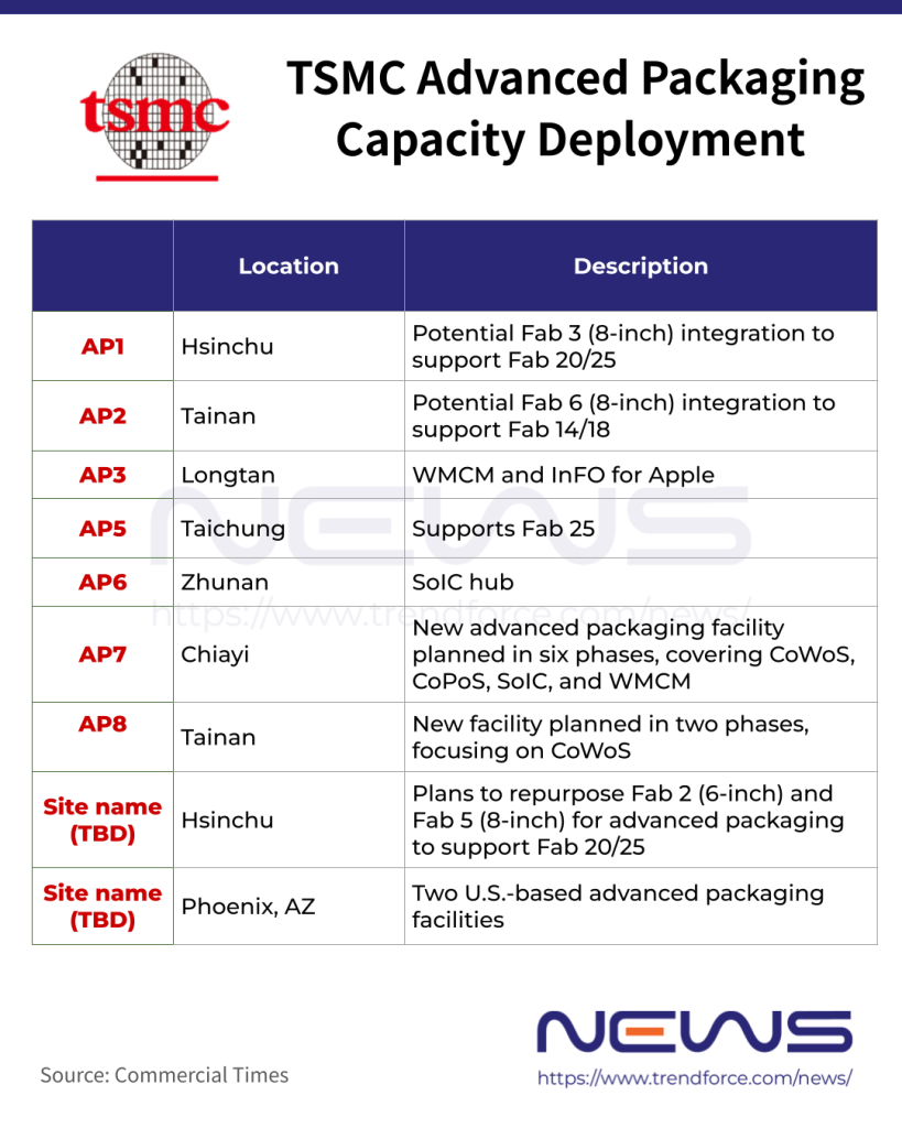 在产能部署方面,台积电持续评估其6英寸和8英寸晶圆厂的布局。报告指出,未来12至24个月内,部分8英寸晶圆厂可能会被改造用于先进封装或测试。报告还指出,台积电的大部分8英寸晶圆厂集中在新竹地区,靠近宝山20号晶圆厂(该厂负责2nm和A14工艺的生产)。如果这些晶圆厂被改造为先进封装设施,将有助于提升尖端制造、先进封装和测试等环节的物流效率,从而进一步缩短量产时间。