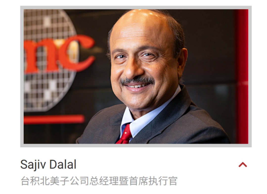 目前台积电官网显示,Sajiv Dalal先生为台积北美子公司总经理暨首席执行官,负责监督北美地区的营运、策略规划、以及业务管理。Sajiv Dalal先生进入半导体产业超过40年,在工程、业务开发及销售方面拥有丰富经验。在加入台积公司之前,Sajiv Dalal先生曾担任爱普生电子美国半导体制造服务的执行董事,并且在国家半导体可程序设计产品集团担任过各种管理及工程职务,为其制程技术开发贡献良多。
