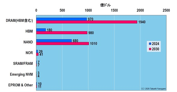 图 8 存储器市场预测(2024 → 2030 年)来源:作者根据 Yole Group 的预测数据制作