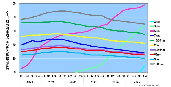 图 11:台积电各节点季度晶圆投入量(2025 年第四季度预测)。来源:Claus Aasholm,以及作者估算
