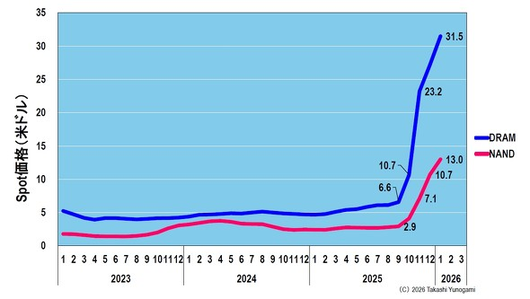 图 9:DRAM 和 NAND 现货价格上涨。来源:作者根据 TrendForce 数据制作