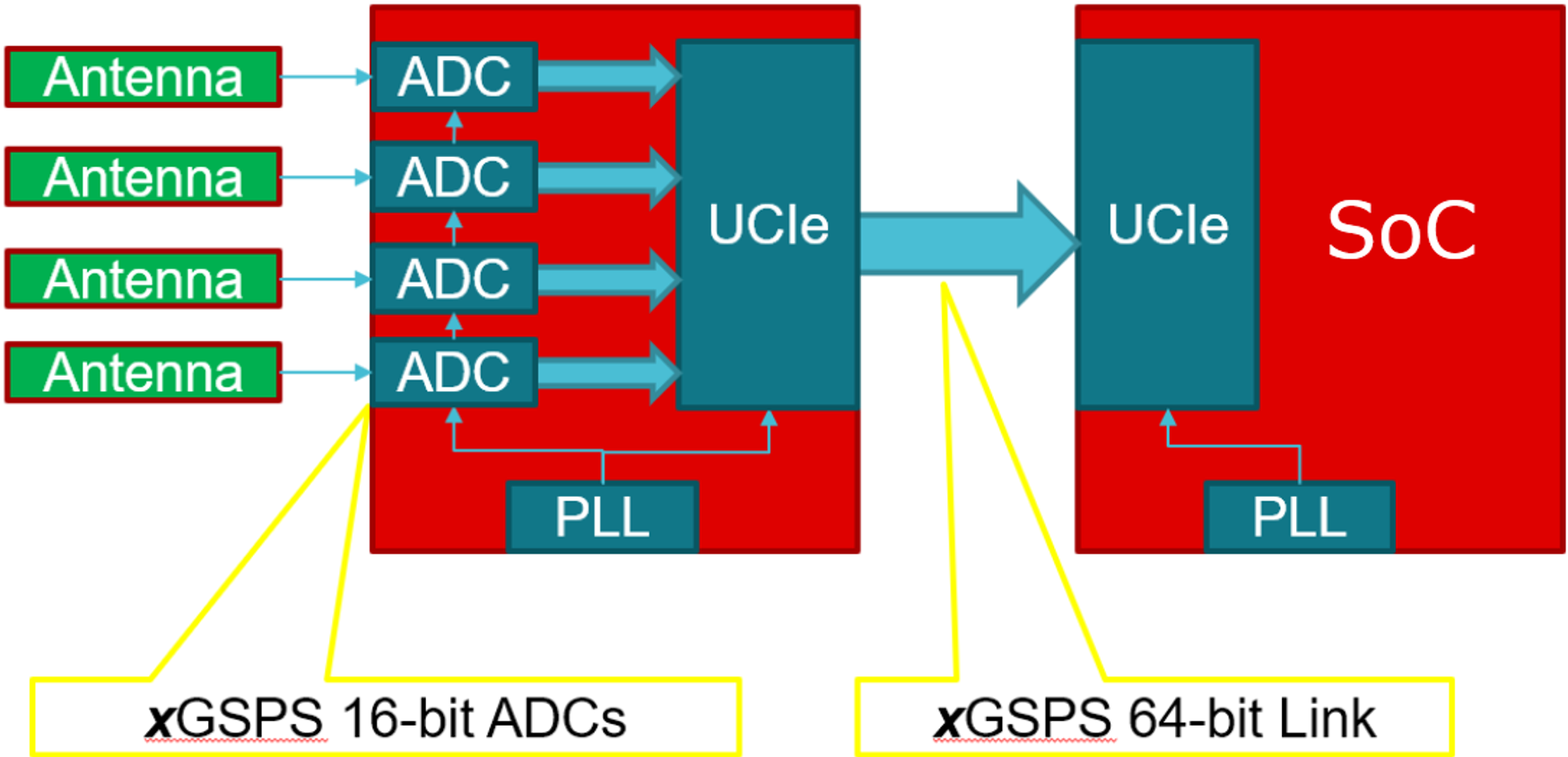 需要该功能的应用会以恒定速率产生数据,且必须以相同速率传输。天线就是典型案例:一个小芯片上生成的数字数据需要传输到另一个芯片,例如 SoC。