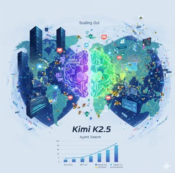 其次,是技术的前瞻性与实用性融合。DeepSeek R1模型的深度思考能力,让AI可以解答更复杂的问题,尤其是数学推理问题。而最近Kimi K2.5的智能体集群能力代表了AI能力进化的下一个方向,就是行动的能力:它让模型根据复杂任务需求,自主生成并动态调度多达100个不同专业背景的“虚拟分身”协同工作,并行处理1500个步骤,将复杂任务的解决效率几倍。