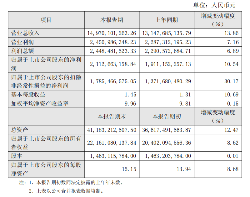 盈利核心指标表现尤为亮眼,公司归属于上市公司股东的净利润21.13亿元,较上年同期19.11亿元增长10.54%,较2023年的18.36亿元亦实现稳步增长;归属于上市公司股东的扣除非经常性损益的净利润17.85亿元,较上年同期13.72亿元大幅增长30.17%,超三成的涨幅充分印证了公司主营业务的盈利韧性与核心经营能力的显著提升,也体现出公司盈利质量的持续优化。每股收益方面,2025年公司基本每股收益1.45元,较上年同期1.31元增长10.69%,较2023年的1.26元提升15.08%;加权平均净资产收益率9.96%,较上年同期9.81%小幅提升0.15个百分点,股东回报能力稳步改善,为投资者带来持续稳定的收益。