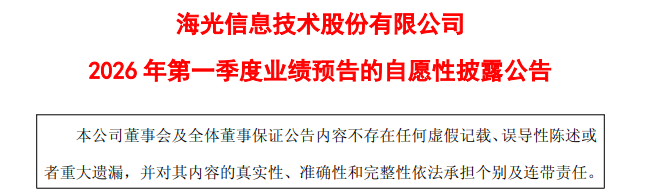 刚刚,海光信息发布2026年第一季度业绩预告的自愿性披露公告。