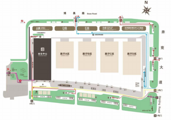 地铁出行(首选):乘坐地铁6号线博览中心站D口出,进入杭州国际博览中心7号门至E4-E5入口
