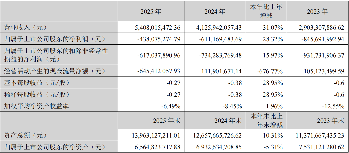 京东方华灿光电股份有限公司正式发布2025年年度报告。报告显示,公司全年实现营业收入54.08亿元,同比增长31.07%;归属于上市公司股东的净利润为-4.38亿元,较上年同期减亏1.73亿元,经营业绩持续改善。
