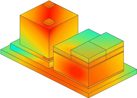 以功耗与热量的基本关系为例:功耗会直接产生热量,而热量又会导致金属线形变、改变晶体管特性。这些变化会在设计中连锁传导,迫使设计人员重新估算功耗、再次进行时序分析。将多个裸片、小芯片与元器件堆叠在紧凑封装内,会进一步加剧这种复杂度。图 1 展示了 3D 堆叠结构中的热热点分布。