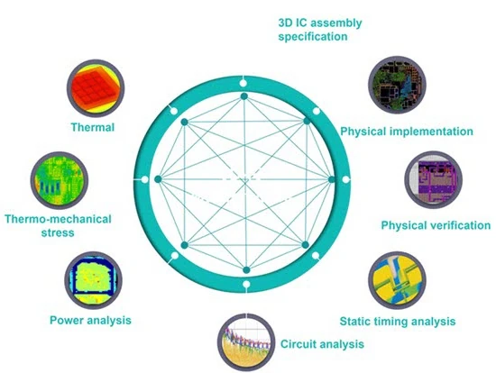 图 2:成功实现 3D IC 设计所需的各类分析相互关联。