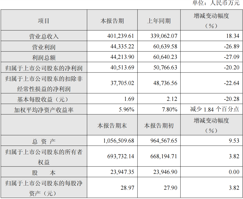 公告显示,2025年度公司营业利润为44,335.22万元,同比下降26.89%;利润总额为44,213.9万元,同比下降27.09%;归属于上市公司股东的净利润为40,513.69万元,同比下降20.2%;归属于上市公司股东的扣除非经常性损益的净利润为37,705.02万元,同比下降22.64%。基本每股收益为1.69元,上年同期为2.12元;加权平均净资产收益率为5.96%,较上年同期减少1.84个百分点。
