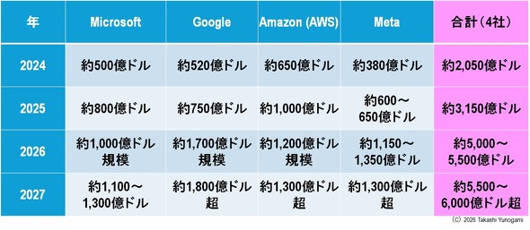 美国前4大超大规模数据中心运营商对数据中心的资本投资预测