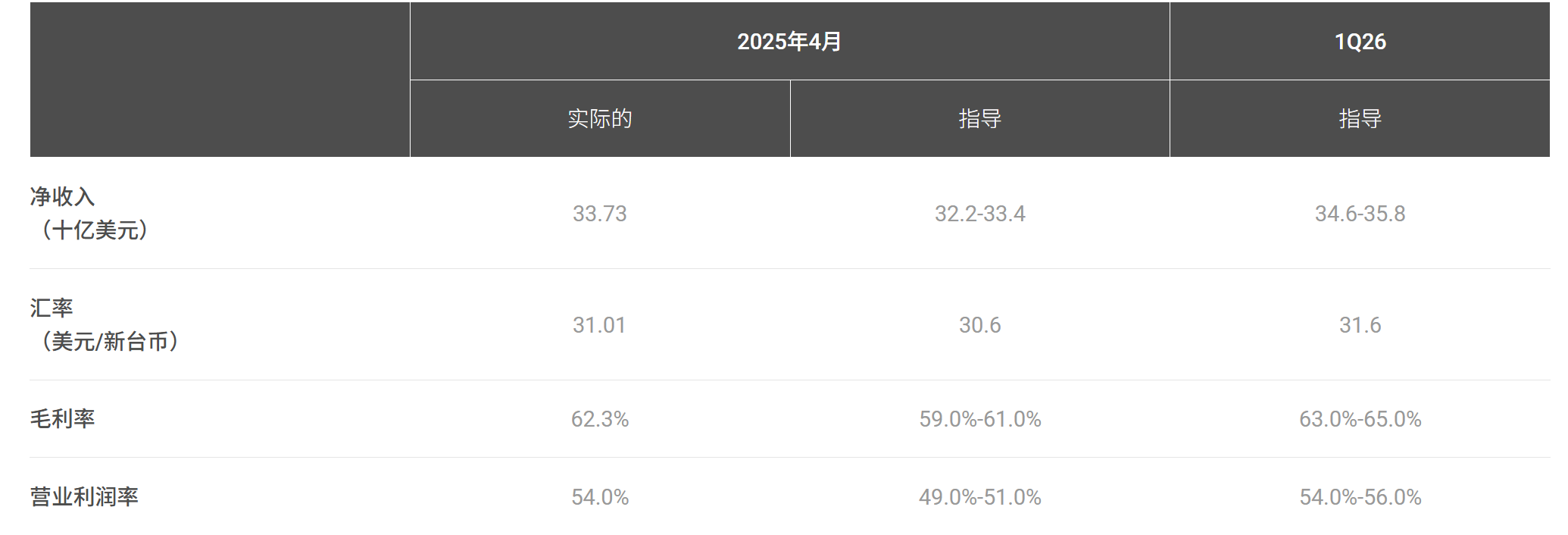 此前在2025年四季度法说会上,台积电给出的今年一季度营收指引是在348至358亿美元之间,按中间值计算,环比增长4%、同比增长38%。在1 美元兑31.6元新台币的汇率条件下,台积电预计今年一季度的新台币营收介于10,996亿至11,312亿新台币之间,按中间值计算,同比增长4.4%,毛利率在63% 到65% 之间,营业利益率在54%至56% 之间。