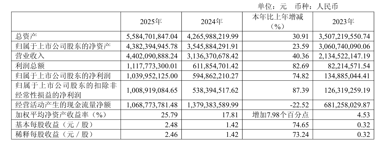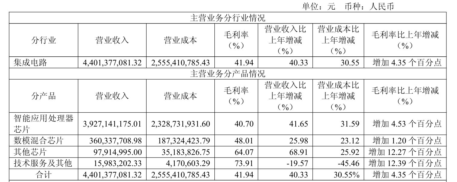 瑞芯微发布全年业绩报告,实现营业收入44.02亿元,同比增长40.36%;归属于上市公司股东的净利润达到10.40亿元,同比增长74.82%;扣非净利润10.09亿元,同比增长87.39%。值得一提的是,这是瑞芯微年度归母净利润首次突破10亿元大关。