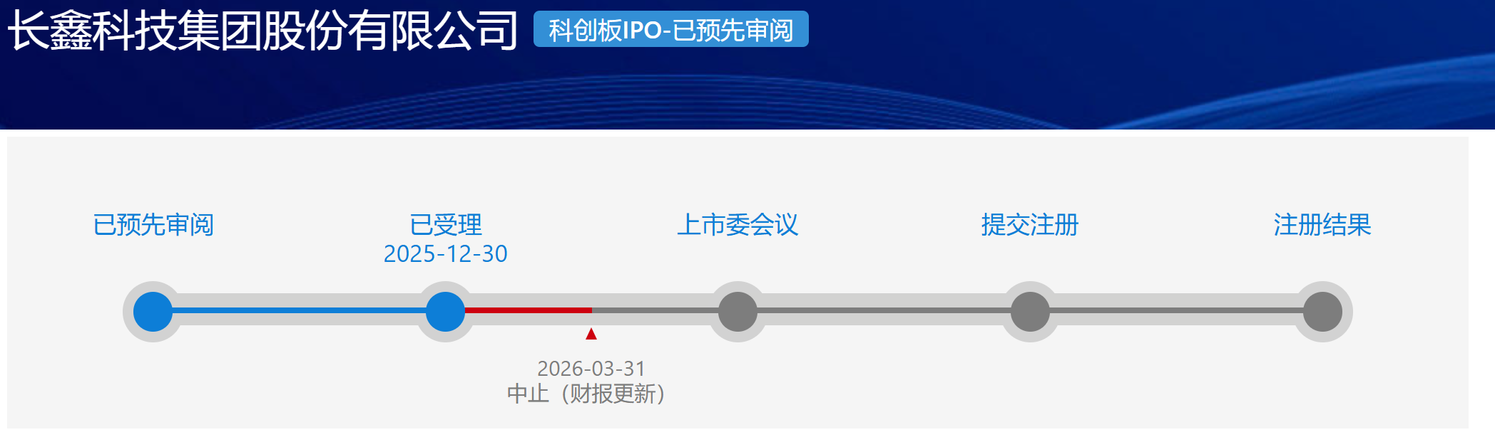 3月31日,上交所官网显示,长鑫科技科创板IPO审核状态变更为“中止”。长鑫科技于去年7月上市辅导备案,并于12月30日获正式受理,其招股书经审财务数据截止2025年6月30日。本次“中止”属于审核过程中的技术性暂停,而非审核终止。通常在企业补充更新财报后,审核程序将继续。长鑫科技是A股“预先审阅制”首个落地项目,目前已完成两轮预先问询。
